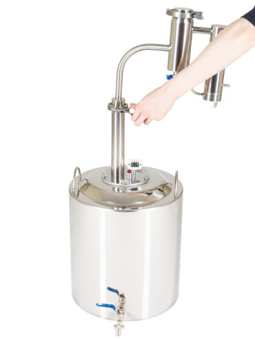 Широкие соединительные трубки диаметром 18 мм и спускной клапан гарантируют полную безопасность при перегонке. Закупорка исключена.